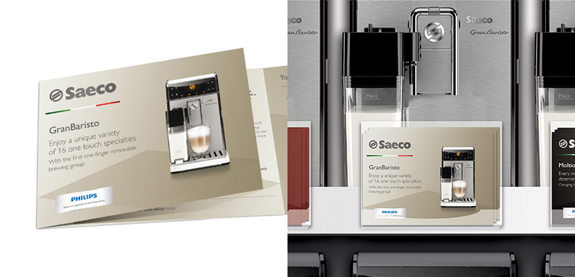 La nota azienda emiliana ha richiesto che venisse definito su suolo italiano un piano di comunicazione in grado di uniformare l’immagine del brand e capace di renderlo distinguibile in modo identico in tutti i paesi in cui era presente la distribuzione. Le linee guida realizzate hanno permesso di sviluppare materiali uniformi per i punti vendita e una app per imparare a degustare il caffè. Saeco ha ottenuto i mezzi per distinguersi ed essere riconoscibile in Italia e all’estero.